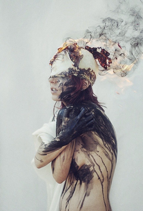 Glossing over that whole hot mess, the fire, the obscured face and the smeared black ooze recall Sarah Michelle Hoey’s kick-ass Requiems.