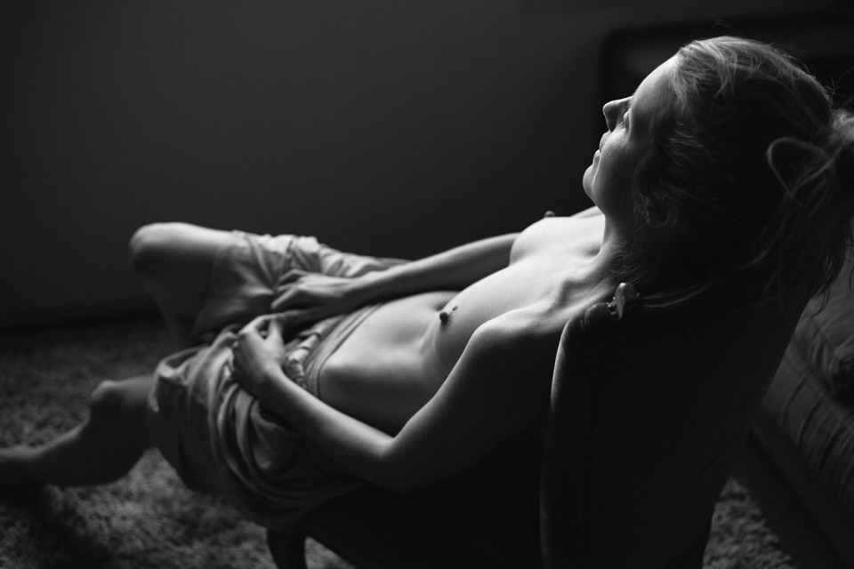 Depth of field dictates the way the eye scans the image–It reminds me of mrchill, in that regard– and emphasizes her enigmatic expression, as if she is calm, comfortable, perhaps even a bit contemplative. (Note: the grace notes in her hand placement; probably my favorite part.)