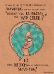 CR:                              I understand the critics, I think they are valid, though. I’m not sure exactly how Brandon Stanton presents it, but I think sometimes people put a lot of expectations and responsibility on an art project. Don’t get me wrong, I do understand that expectations are natural and responsibility is something that does exist. But I guess what might have happened to HONY that also happens to my work is that people put it in some kind of pedestal in which it was never meant to be. Well, at least about my work I feel a bit this way. I identify myself as a feminist, but I completely refuse the idea that I would be the “new face of feminism”, as I’ve seen around. I am not feminism itself. I won’t tell anyone how feminism should be handled, what’s the “right or wrong” way to fight the fight. There are many ways to fight sexism, racism and many other kinds of oppression, and I am not a leader or anything. I have a language of my own, which is through colored pencils drawings of different women, each of them with a story, and a non-agressive friendly text. This is a way for me to express myself, express my ideas, invite people to identify, maybe (if I’m lucky) make some people aware that sometimes they say things that are really rude, even though they might not notice at first. However, there are people who are really angry, people who are tired, people who have been traumatized, people who don’t share even half of the privileged that I know I have, people who only have anger to keep them moving on. I won’t judge these people’s ways to fight the same fight, and I’d never tell them how to handle feminism. That would be very disrespectful. I thank you for your kind words about my work, and I’m happy that it touched many people so deeply in a very positive way the way it has. This is so much more than I could ever expect! But sometimes I feel the pressure of expectations in a way I’d never thought it would be. I’m still a human being full of flaws[;] I make mistakes the whole time. This project is about representing some women, but I don’t have the pretension to represent ALL women. It is about feminism, but it’s not supposed to be a guideline of how to do feminism. It’s about representation, but it doesn’t have the claim to being the “right” way to represent people.
