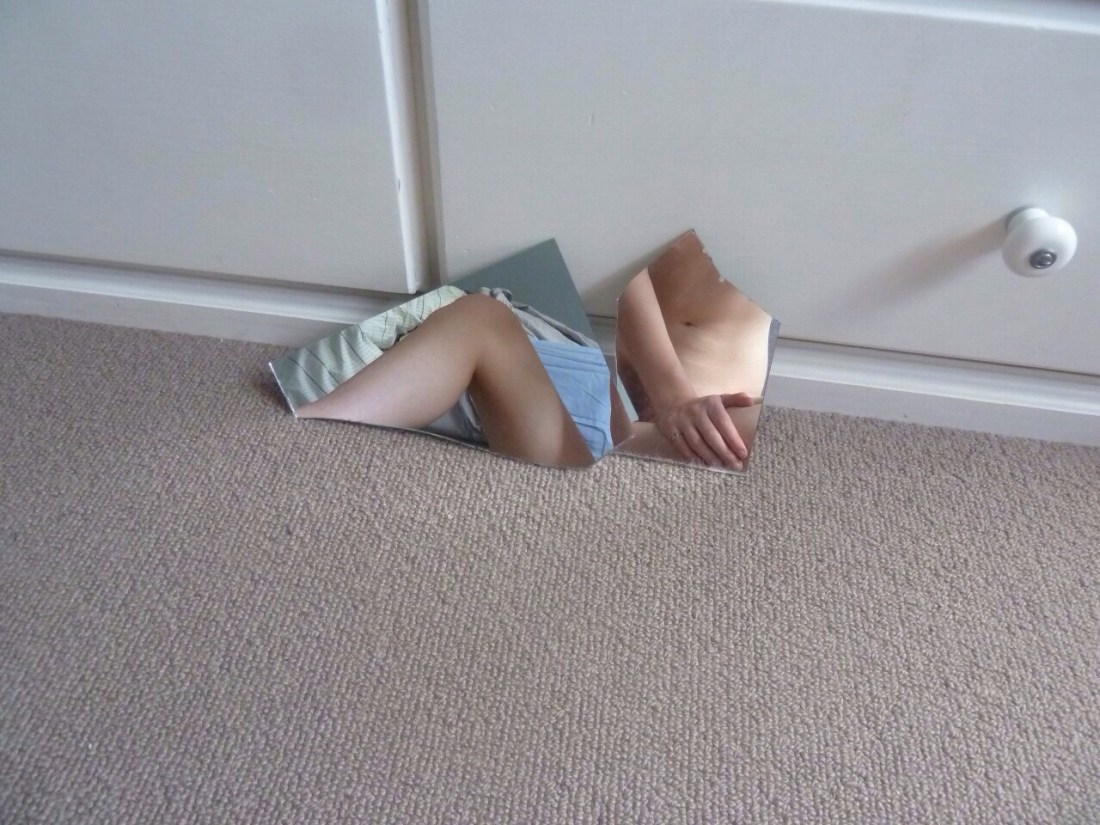 And what’s captured is fucking fascinating. The texture of the carpet, the suffused light with soft shadow stretching from the drawer knob insinuating a broader world outside of the frame, the mirror fragments presenting ostensibly naked bodies in a seemingly impossible configuration; the synesthetic texture of the carpet.