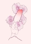 The delicate use of color in these is what initially commanded my attention. Each illustration features an ever so slightly different soft pastel background and the so subtle it’s almost pallid minimalism of the flowers focuses attention on the red to pink gradations evidencing vigorous stimulation.