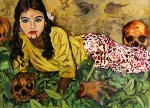 [↑] Kerbcrawlerghost – Detail from cover art for Weregoat’s Pestilential Rites of Infernal Fornication (2016); [-] Christian Martin Weiss – Untitled (2017); [↙] Source unknown – Title unknown (201X); [↘] Chitra Ganesh – Girls with Skulls (1999)