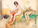 Carl Larsson – [↑] The Model on the Table (1906); [+] Anna-Stina {Mrs. Alkman, née Rydell} (1905); [↓] Model Writing Postcards (1906)