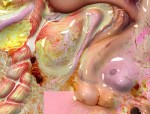 I didn’t pick up on the graphic depictions of sexual intercourse; the is-it-a-glazed-ceramic sculpture-or-2D-painting aesthetic makes the viscous fluid like masses look like a swirled mass of organs or perhaps organs modeled from oobleck.