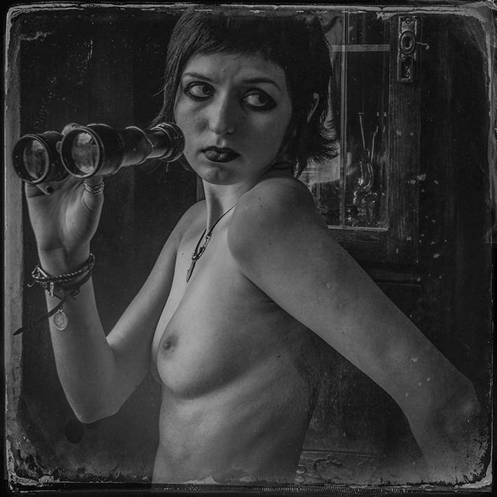 I’m not 100% on board with this composition–the way the woman is looking back over her shoulder seems like a failed effort to counterbalance the prominence of the binoculars in the frame.