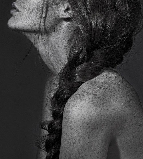 That’s ultimately what I adore about this image: her freckles add texture to her skin and thus weight and solidity to her body. She is not a representation; she’s a living, breathing, dreaming being with fears, hopes and ideas who also happens to be breathtakingly beautiful.