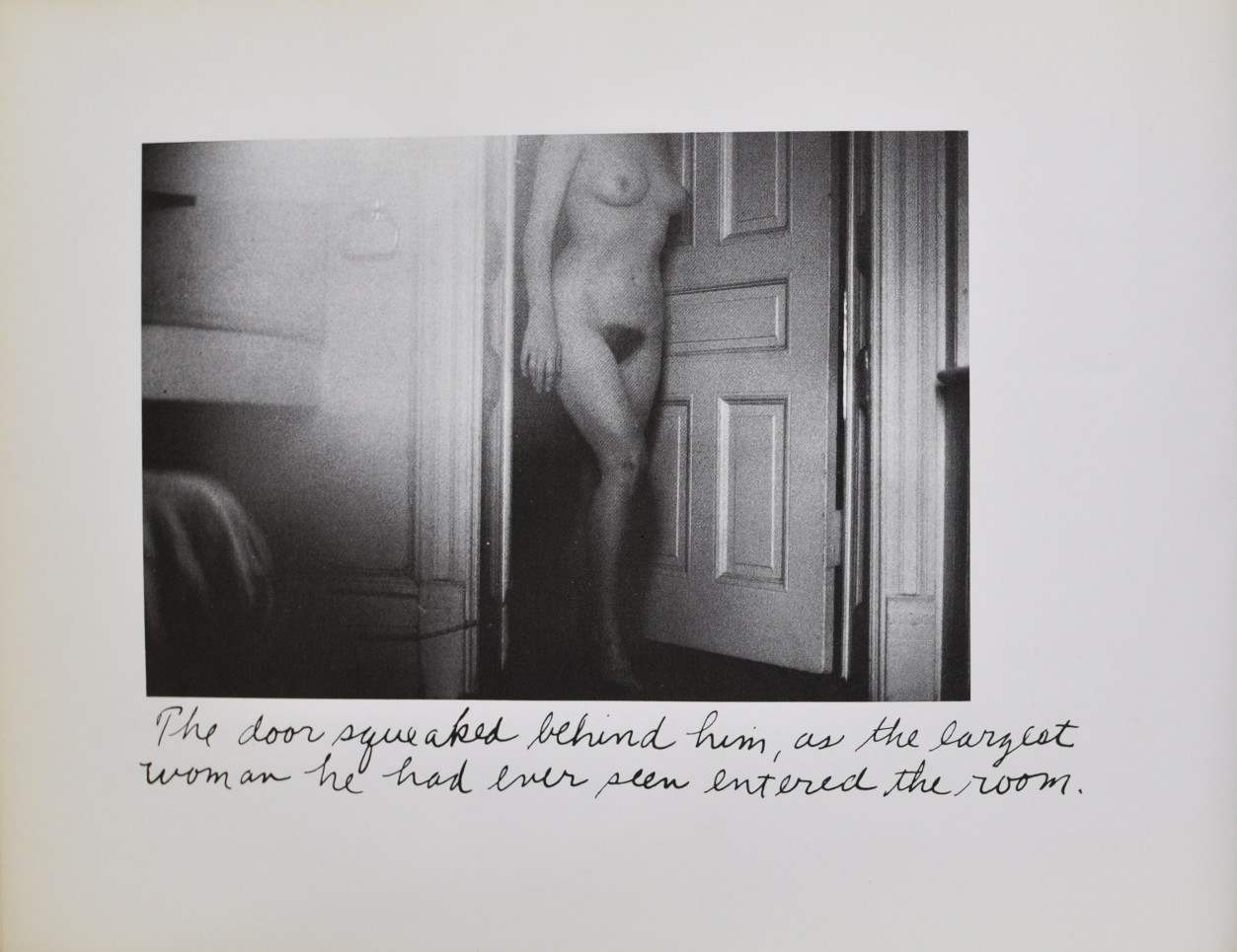 - The door squeaked behind him, as the largest woman he had ever seen entered the room.