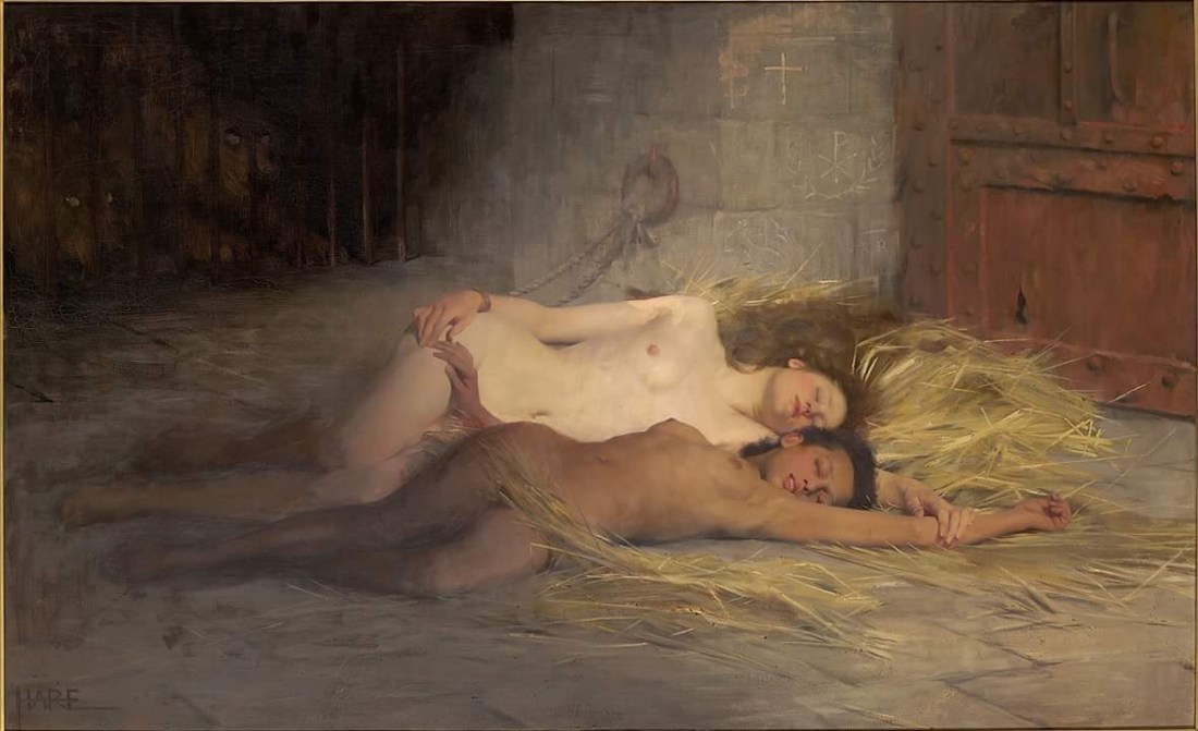 With this painting, Hare was apparently making very thinly veiled erotica designed to fool Xtians but to also give voice to his own interest in a sort of slave spectacle peddled by the likes of Boucicault.