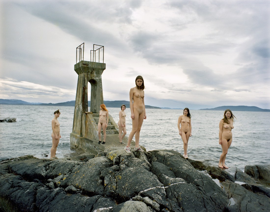 Stokkedal also has a rare knack for posing groups. (The above is a stroke of genius, actually–clustering the three women farthest from the camera together with the structural element in the background and then spacing the three other women who are more in the foreground closer to the camera, against the more prominent negative space of the landscape. Whereas normally you’d by more inclined to group the three women who are closer together more in the foreground to balance against the dominant concrete structure. This works partly because of the line of the clouds which drives the viewers eye left to right; also: there’s an understanding of the way the eye naturally interprets the six figures in different triangular relationship groupings given where the eyes is within the frame. It’s an attention to detail that very few people possess.)