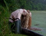 In the top-rightmost picture the shape of the woman’s body, her pre-orgasmic expression and the way her dress spreads out behind her but her head hangs, while the strain of her posture–there’s no way that position doesn’t hurt to hold; all point to a dichotomy between the beauty of nature and the way that such beauty is never that far removed from something that will soil the skin if it’s touched.