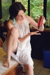 And that’s not to say this completely works. Ostensibly, the fellow on the top left is ladling honey out of one of wide mouth wine glass with a wooden spoon and letting it drip onto the engorged glans of the man on the lower left. (Note: the wine glass bears more than a passing resemblance reminds me to a similar object in Vermeer’s The Wine Glass.)