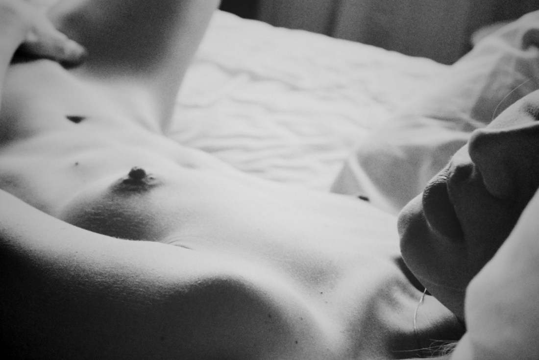 If this were any other image on Tumblr, you’d see the white edge of the window that’s illuminating the room. Compositionally, it would be a terrible decision, distracting from the dynamic tension between light and dark. Instead, the window is excluded and instead the only hint of it besides the light it’s introducing and subsequent shadows cast, is the left arm of her top. Along with the chair favored slightly to frame left and angled ever so slightly toward the window, the frame is well balanced. (I can’t remember ever seeing this before but it’s a great notion–in traditional photography, if anything too near the edge of the image is blown out, you actually have to increase the amount of light it gets when making a print in order to burn it in so that it does not appear to be the same color as the paper.)