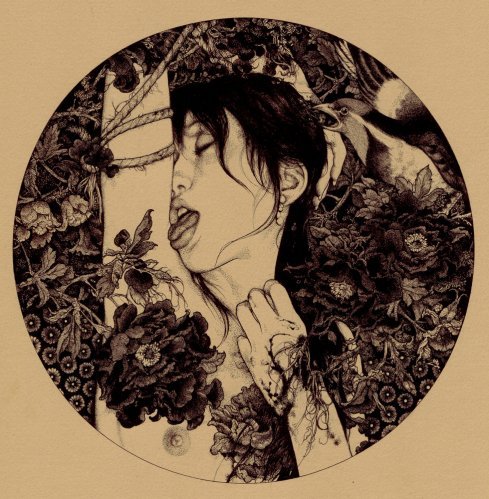 There’s a sense of damage, too. Even if this isn’t a depiction of menstruation, there’s no way this blood isn’t emerging from an intimate wound. But with the two fish trying to swim against the stream–salmon, at least, swim upstream to procreate. The whole thing has a strong sense of the cyclic.