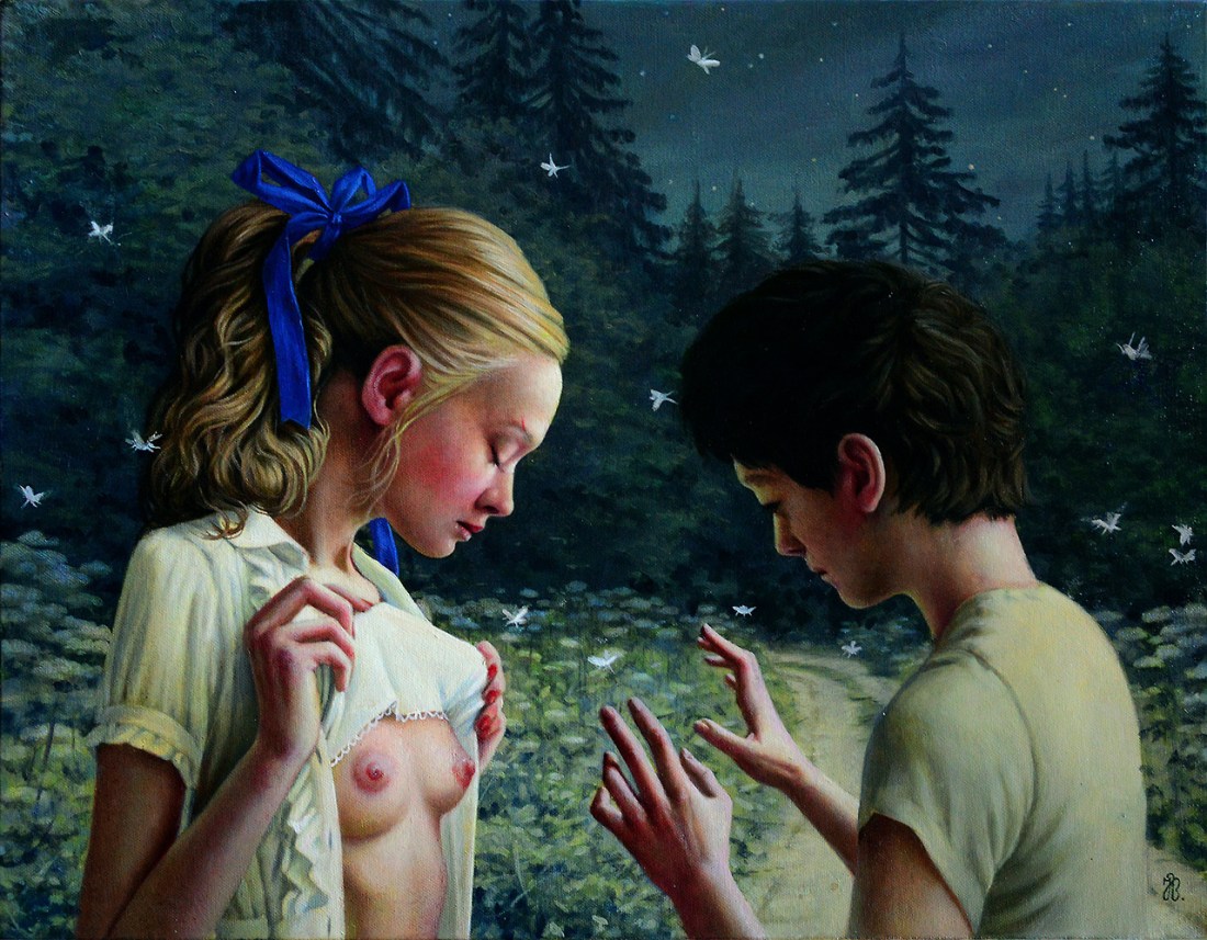 Other preposterous assertions made by idiots about his work: due to the influence of Baroque and Neoclassicism on his work along with–apparently the difficulty Westerners have in pronouncing his name– he’s referred to as Caravaggio. (This makes zero sense as he actually goes by the anglicized Jeff Lin; also: I know there’s a tendency to assume repressive regimes keep their people from engaging with more modern art–but I would bet a private cam session that he’s thoroughly familiar with the work of Lucian Freud–the more photographic rendering of light is an absolute dead ringer between the two.)