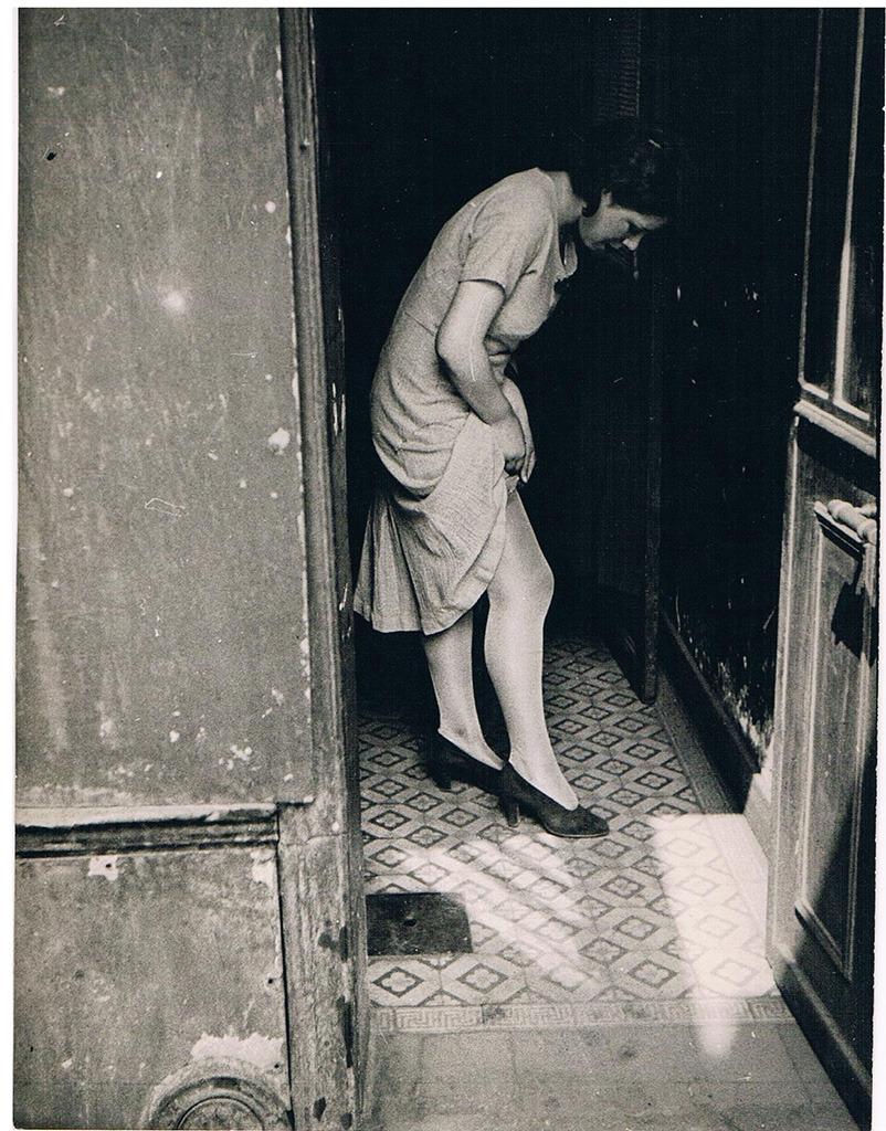 The image strikes me as too bright to be Brassai. Further, this woman has clearly ducked out of sight to straighten her stockings. The photos from his ‘sex worker’ period suggest the subjects as collaborators aware of the camera.