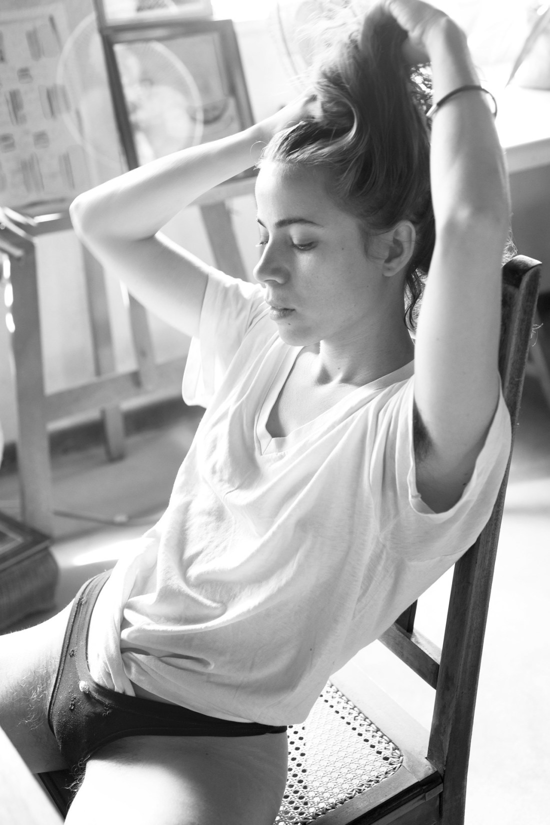 This would’ve been a good image without any other additions but there’s also the way the light catches her eyelashes and what look like burns from cigarette ashes on her underwear that makes this thoroughly mesmerizing.